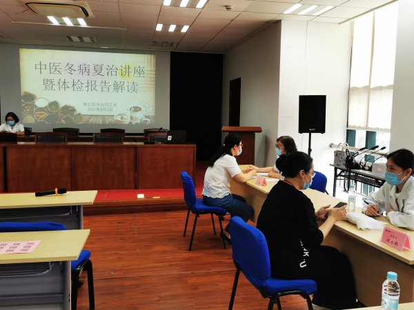 本次講座邀請了郵電醫院中醫科祝醫生進行講解。如今正處于三伏天,是中醫冬病夏治的最好時機,祝醫生從食療、常用治療手法、冬病夏治適應癥等多個角度對冬病夏治進行了一個系統的講解。隨后郵電醫院內科、外科、眼科、婦科和中醫科的五位醫生為有需求的員工們進行一對一的體檢報告解讀以及健康問題的咨詢。活動結束后,區分公司工會也將郵電醫院各專科咨詢群的二維碼發至工會群內,這樣因工作原因無法參加的職工,也可以通過微信方式進行線上咨詢。