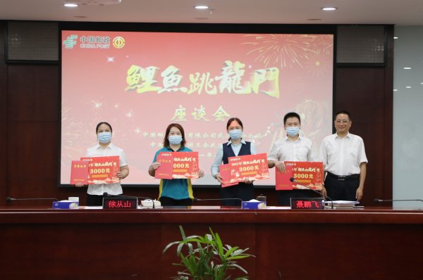 8月25日下午,2021年武漢郵政“鯉魚跳龍門”活動座談會在武漢分公司西院十樓會議室圓滿舉行。會上,市分公司領(lǐng)導(dǎo)為今年“鯉魚跳龍門”獲獎職工代表頒獎,對他們表示祝賀。市分公司黨委書記、總經(jīng)理徐從山,副總經(jīng)理、工會主席聶鵬飛,評選小組代表及部分獲獎職工參加了座談會。