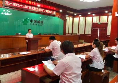 8月26日下午,定州市分公司工會協(xié)助金融業(yè)務(wù)部舉辦了“員工行為規(guī)范”主題演講活動,來自網(wǎng)點一線的17位優(yōu)秀選手參加了演講比賽。