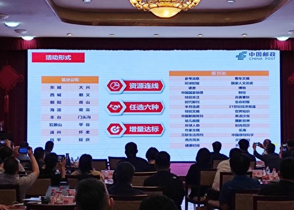 9月26日,北京郵政邀請(qǐng)近30家重點(diǎn)暢銷報(bào)刊社領(lǐng)導(dǎo)與工作人員參與“比武爭(zhēng)先促提升 比學(xué)趕超當(dāng)先鋒”暨大收訂暢銷報(bào)刊業(yè)務(wù)發(fā)展比武大會(huì)。北京市郵政分公司副總經(jīng)理范小榮,北京市郵政分公司市場(chǎng)部、發(fā)行局及各區(qū)郵政分公司相關(guān)領(lǐng)導(dǎo)及工作人員參會(huì)。會(huì)場(chǎng)特別布置為茶話會(huì)形式,議程穿插現(xiàn)場(chǎng)抽獎(jiǎng)環(huán)節(jié),會(huì)議氛圍始終喜慶、熱烈。