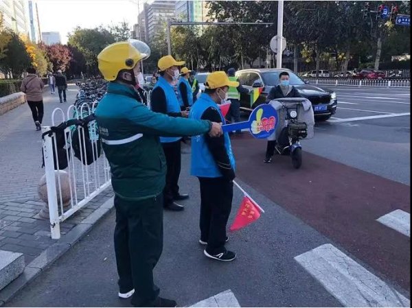 10月27日清晨早高峰,來自海淀區中關村郵政支局的4名郵政投遞員走進位于海淀黃莊路的某交通路口,以“禮讓斑馬線,文明在海淀”宣傳高潮日活動志愿者身份,手持文明點贊牌協助交警維護交通安全,并為禮讓斑馬線的司機點贊。