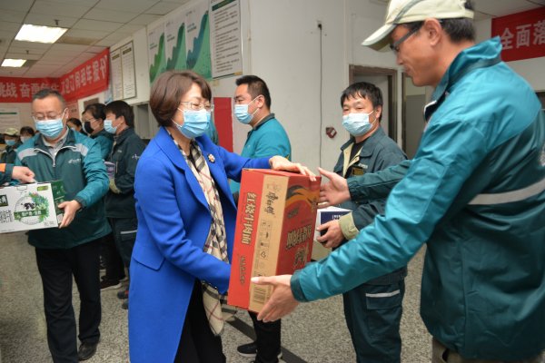 北苑支局由于所處地理位置靠近近期的疫情嚴(yán)控區(qū),被隔離職工較多,對(duì)于“雙十一”業(yè)務(wù)高峰期工作造成了一定困難,朝陽(yáng)區(qū)分公司工會(huì)及時(shí)為一線(xiàn)職工準(zhǔn)備了蔬菜生鮮、防寒圍脖帽。王艷主席在得知此情況后,第一時(shí)間為職工們送來(lái)了食品,并不斷向堅(jiān)守崗位的職工們表示真摯的感謝與贊賞,囑咐區(qū)分公司工會(huì)要及時(shí)向被隔離職工送去慰問(wèn)品與關(guān)懷。