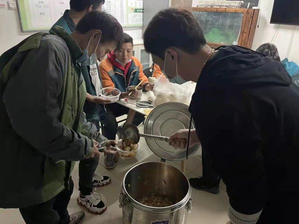 雙十一期間,角門支局日進口量突破2萬件,投遞員加班加點投遞到深夜。為確保投遞員吃上熱飯熱菜,支局工會利用職工小廚房,組織局管理人員,將購買的五花肉、大白菜、豆腐清洗、切好、上鍋……大家熱火朝天的忙碌起來。由同事們親手制作、充滿友愛、香噴噴的熱飯放到保溫桶里,送到支局所屬的各營業部,讓夜間投遞的職工在投遞員之家吃上可口的熱飯熱菜,胃暖心更暖!(北京郵政工會)