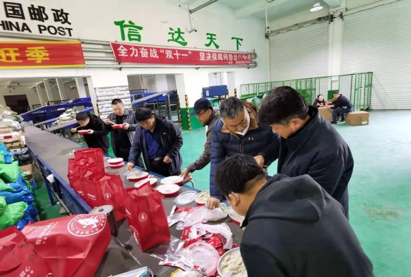 第三組由西安區和東安區兩個分公司的職工組成。為了能讓郵件盡快轉運出口,慰問組人員一起參與到了郵件的裝卸轉運工作中。他們不怕臟不怕累,和其他14名隊員一樣揮汗如雨,裝卸郵包,讓在場的所有隊員都深受感動。由于趕上周末,為了不再麻煩食堂送餐,慰問組為隊員們買來了熱騰騰的餃子,并在餐后又投入到了郵件的轉運工作中。一線員工深受感動,紛紛表示,要以最飽滿的狀態、最堅定的斗志迎接即將到來的雙十一攻堅戰。