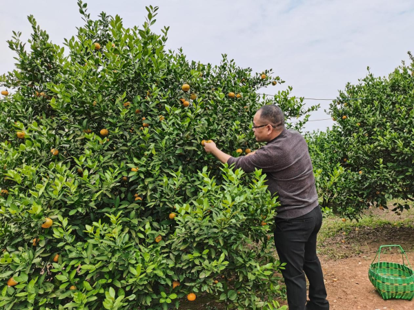 采摘活動中,員工們三人一群,兩人一伙的聚在一棵棵橘子樹下,或彎腰、或踮腳,滿足的收獲著春日種下的果實。