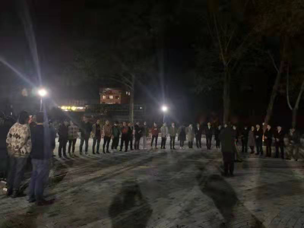 11月1日黃昏,長陽高家堰廣場忽然升起一道輕煙,劈啪作響的篝火照亮了寬敞的舞臺,伴隨著激昂的音樂和歡歌笑語,六十幾名郵政職工在場地上翩翩起舞,吸引了大批路人圍觀,整個廣場洋溢著一片歡樂的氣氛。