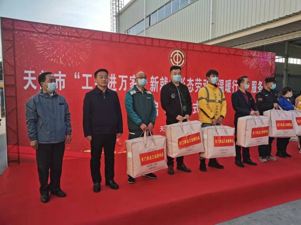 11月26日,中國(guó)郵政集團(tuán)工會(huì)天門(mén)市委員會(huì)組織一線優(yōu)秀投遞員代表,參加了市總工會(huì)主辦的“工會(huì)進(jìn)萬(wàn)家·新就業(yè)形態(tài)勞動(dòng)者溫暖行動(dòng)”服務(wù)月啟動(dòng)儀式,我公司5名一線優(yōu)秀投遞員在啟動(dòng)儀式上受到了市總工會(huì)的現(xiàn)場(chǎng)慰問(wèn)。