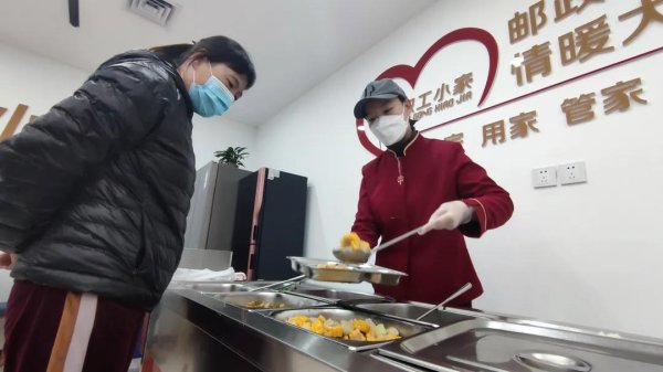 “對于我們投遞員來說,這樣的午飯不僅吃的香,更能吃的飽,現在外面天氣越來越冷了,回到支局吃飯更方便也更衛生。”臨近中午,忙碌了一上午的東花市郵政支局投遞員陸續回到支局,在剛剛裝修一新的職工小家中,他們一邊吃著熱乎乎的午飯一邊稱贊送餐“到家”服務。