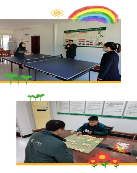 職工小家除了每天有可口的飯菜,業(yè)余活動(dòng)也是豐富多彩,體育活動(dòng),大家完全是全能型選手,乒乓球、象棋、羽毛球、跳繩、長(zhǎng)跑什么都可以。有的就是專(zhuān)業(yè)選手,要么下象棋總能贏,要么打乒乓球總是無(wú)人能敵。每當(dāng)在繁忙的工作之后,大家在一起玩一玩,鬧一鬧,為工作之余又增加很多別樣的歡聲笑語(yǔ),不僅有益于身體健康,也有益于心情舒緩,特別有助于大家保持工作的積極性和良好的生活狀態(tài)。