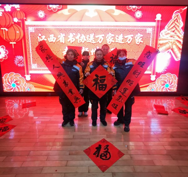 員工們拿著一幅幅寓意喜慶的春聯和“福”字,臉上洋溢著喜悅,整個現場被紅色的春聯和熱鬧的人群映襯得年味十足。(江西省郵政工會)