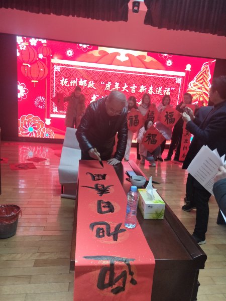 本次活動邀請了中書協會員周俊、何華,省書協會員張山東、饒峰四位老師現場揮毫潑墨,為即將來臨的新春佳節營造喜慶祥和的節日氣氛,為廣大郵政職工送上年味十足的新春祝福。