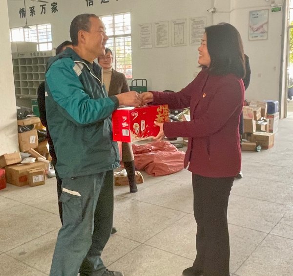 當天下午,楊躍蘭一行走訪慰問了上高縣寄遞事業部一線人員,詳細詢問了縣寄遞事業部扁平化管理的情況,叮囑他們要注意防寒保暖、注意交通安全。緊接著來到了和平路營業所與錦江營業所,看望慰問了網點生產人員。