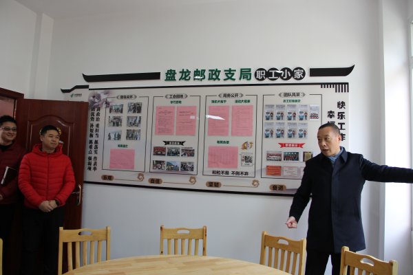 在會議開始之前,區分公司總經理朱軍帶領大家參觀了盤龍郵政職工小家。盤龍郵政職工小家是分公司的星級小家。在這里,不僅有寬敞的會議室、活動室,溫馨的職工食堂,舒適的職工寢室,還有環境優美的庭院。舒適的小家,優美的環境,讓員工在結束忙祿的工作之后得到一個溫馨的休憩之所。