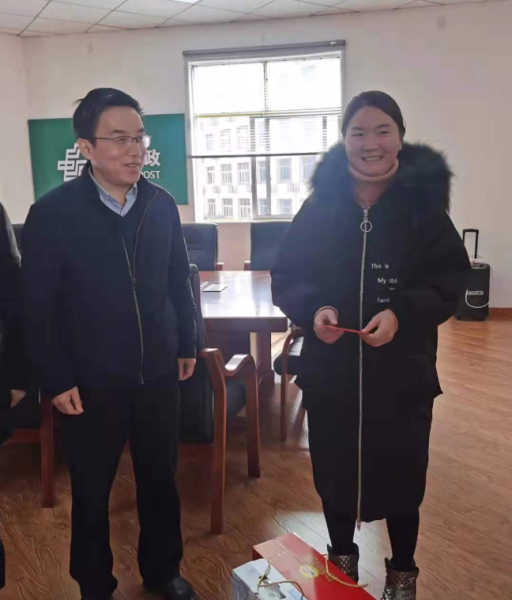 歲寒送溫暖 真情暖人心。在新春佳節即將來臨之際,2022年1月19日上午,江西省上饒市分公司黨委書記、總經理呂茂華,攜綜合辦公室經理徐飛、財務部經理滕彩艷、金融業務部副經理徐順一行來到萬年縣分公司,對困難職工及鄉村振興工作組進行了慰問,并向他們并送去了新春的問候和祝福。
