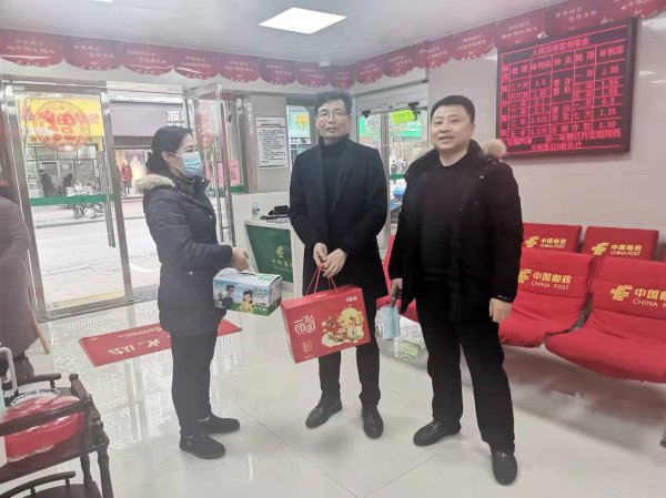 在建設西路營業(yè)所,李捷平為一線網(wǎng)點員工送去慰問禮品和新春祝福,感謝他們?yōu)閷崿F(xiàn)撫州郵政高質(zhì)量發(fā)展所作的貢獻,并悉心詢問金融旺季發(fā)展情況,強調(diào)要發(fā)揮好郵政最大的協(xié)同優(yōu)勢,搶抓旺季市場,突出金融+文傳等多專業(yè)融合,努力實現(xiàn)各專業(yè)開門紅、全面紅。同時,他叮囑大家要做好防寒保暖,特別是春節(jié)臨近,人口流動性加大,更要做好安全防范工作以及個人防護,確保疫情防控和旺季發(fā)展兩不誤。
