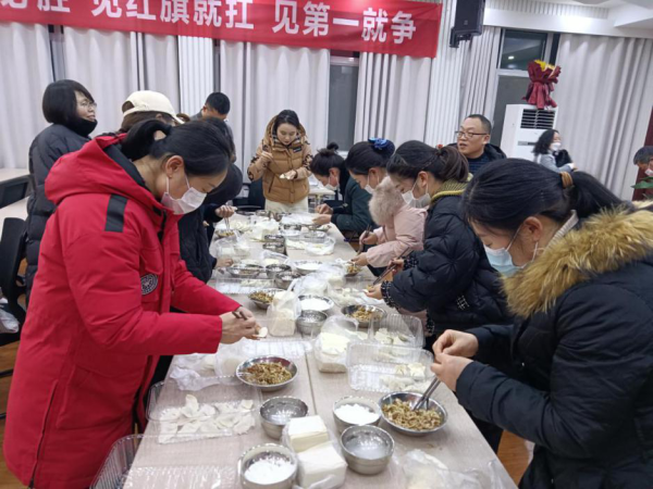 活動現(xiàn)場氣氛活潑,吸引不少職工參與。肉餡和面皮在一雙雙巧手下,瞬間變成了各式各樣漂亮誘人的餃子。有熟練的、有生疏的、有現(xiàn)學的、有相互指導的、有拿著餃子自拍的,大家包的餃子形狀各異,有圓的、扁的、各種各樣,充分展示的員工的廚藝。