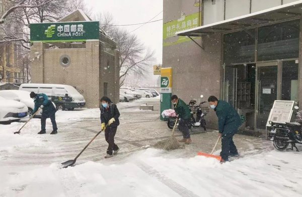 針對此次降雪持續時間長、累計雪量大、降溫顯著、能見度低等特點,豐臺區分公司第一時間向各支局發布工作提示。提示各單位外勤作業注意安全,車輛行駛時各行其道、避讓行人、降低車速、保持車距,不搶行、不逆行、不闖燈,集中精力,遇有特殊情況及時上報,確保行車安全。各網點營業前,鐵鍬、掃帚齊上陣,及時對支局門口路面進行清理,確保主要通道無積雪積冰,各項經營工作平穩有序。為保障郵路暢通,投遞崗位員工冒雪穿梭在大街小巷,按時將郵件送到用戶手中。(北京郵政工會)