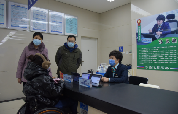 在2021年“我為群眾辦實事”實踐活動中,東四郵局升級了廳堂的無障礙服務,完善營業廳無障礙服務臺,改進專為坐輪椅用戶服務的柜臺,設置能翻譯112種語言的語言翻譯機,開辦手語小課堂,帶領前臺營業員定期開展手語培訓,為殘障人士提供更貼心的服務。目前,東四郵局通過線上視頻的方式可為北京市700余個郵政網點提供手語翻譯支撐服務。