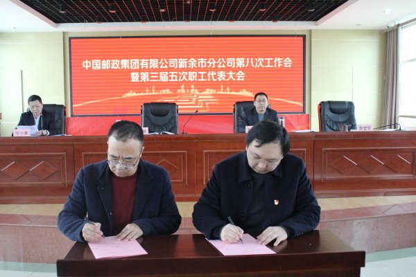 會上,與新余市分公司副總經理、工會主席李智軍代表監督方,與公司第一責任人李越珂簽訂了《2022年新余市分公司為員工辦實事承諾書》、《2022年新余市分公司工資集體協商專項協議》。(江西省郵政工會)