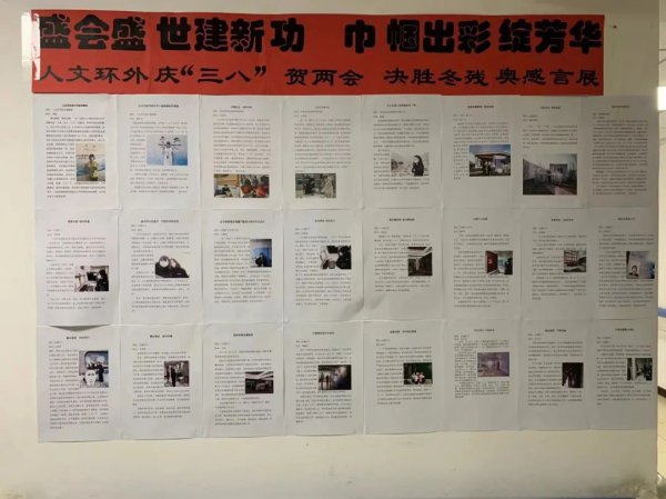 駐點組將優秀作品在宣傳欄中展出,保障組為獲獎的女同志準備的精美禮物。鏗鏘玫瑰,競展芳華,服務冬奧不負使命,書寫昂揚奮進的巾幗華章!(北京郵政工會)