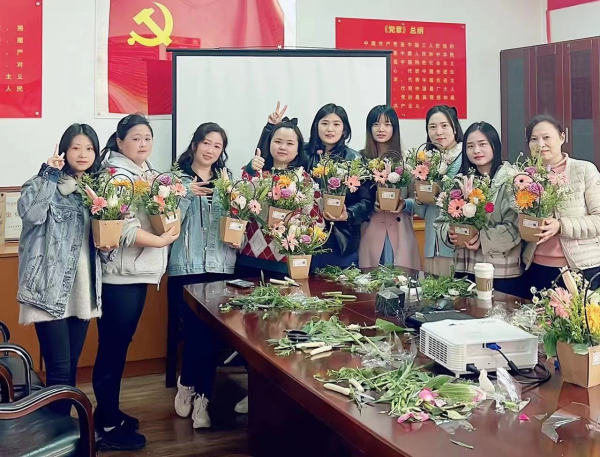 花藝培訓(xùn)老師首先為大家簡(jiǎn)單介紹了插花藝術(shù)的基本知識(shí)及插花技巧,接著現(xiàn)場(chǎng)進(jìn)行教授插花藝術(shù)。女職工們紛紛躍躍欲試,發(fā)揮創(chuàng)造力,整合造型,在老師的指點(diǎn)下,普普通通的花草經(jīng)她們的巧手都變成了一個(gè)個(gè)精美絕倫的作品,大家欣賞著自己親手創(chuàng)作的插花作品感到滿滿的成就感與幸福感。