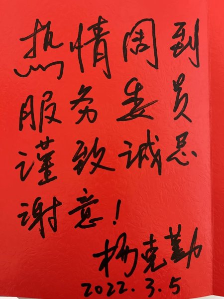 雙榆樹支局兩會服務(wù)團隊為政協(xié)委員及工作人員提供認(rèn)真細(xì)致的郵政服務(wù),得到了政協(xié)委員們的廣泛好評,委員們紛紛留言。 第十三屆全國政協(xié)委員楊克勤寫下:熱情周到,服務(wù)委員,謹(jǐn)致誠懇謝意! 第十三屆全國政協(xié)委員慧明法師題詞:福虎威威。