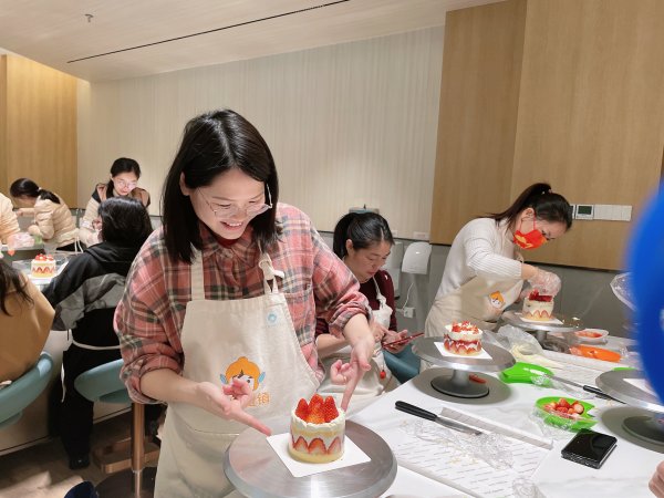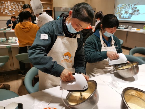女員工們先認(rèn)真仔細(xì)聆聽(tīng)烘焙老師講解、示范制作的步驟方法,然后再親自動(dòng)手進(jìn)行制作。她們紛紛拿出“看家本領(lǐng)”,擼起袖子,穿上圍裙,打雞蛋、和面粉,理造型,放烘烤,涂奶油、裱花樣、巧裝點(diǎn),一件件個(gè)性獨(dú)特、靈動(dòng)新奇、香氣撲鼻、色彩鮮艷、甜蜜可口的作品新鮮出爐了。女員工們甜甜地笑著,美美地吃著,開(kāi)心地聊著,綻放著美麗,展示著自信,洋溢著幸福。