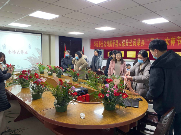 微風漸暖 ,花香漸濃。在第113個國際"三八"婦女節來臨之際,懷遠縣郵政工會于3月6日下午組織女職工開展“三八女神節”插花比賽活動。