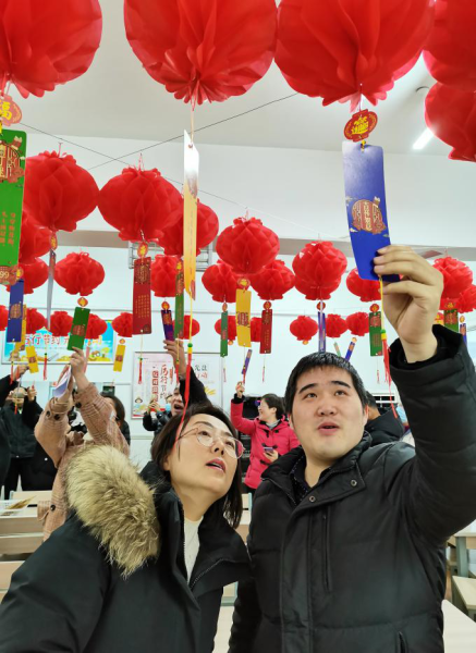 本次展示活動共收到了33幅作品,主要囊括了繪畫、書法、攝影、手工作品。 活動現場,手工作品面前,不時傳來女職工們贊嘆的聲音,她們驚喜看著一對大紅色,喜氣洋洋的古代大婚男女對娃擺件《龍鳳呈祥》,這對擺件從發飾,頭冠,貼花,到身上的彩珠都是手工縫制、一針針鉤好,女鳳冠的每一顆珍珠的長度,和固定的力度,發飾的噴漆都是作者用心制作。此作品做了三個月左右才完美收工。 攝影作品前,徐紅副主席抓拍的《鬧元宵.猜燈謎》的照片洋溢著喜慶歡樂的氣氛,讓大家又一次回憶起職工們當時猜燈謎的歡樂場面。