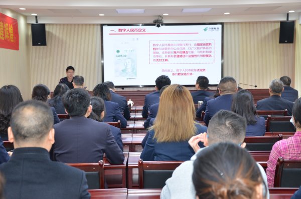 為進一步促進數(shù)字人民幣業(yè)務(wù)發(fā)展,提升全員新業(yè)務(wù)熟悉度及其拓展能力,4月19日中午,渝中分公司利用休息時間舉行了數(shù)字人民幣知識培訓(xùn)。分公司領(lǐng)導(dǎo)班子全體成員,各職能部室、專業(yè)公司工作人員及基層網(wǎng)點業(yè)務(wù)骨干70余人參加了培訓(xùn)。