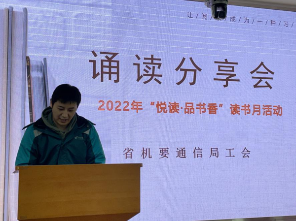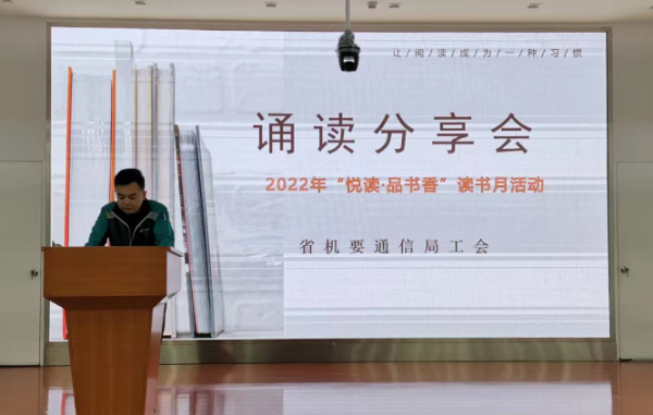 為了倡導(dǎo)全民閱讀的良好風(fēng)尚,為職工搭建學(xué)習(xí)交流的平臺(tái),在世界讀書日來臨之際,4月14日上午,省機(jī)要通信局工會(huì)舉辦職工誦讀分享會(huì)。