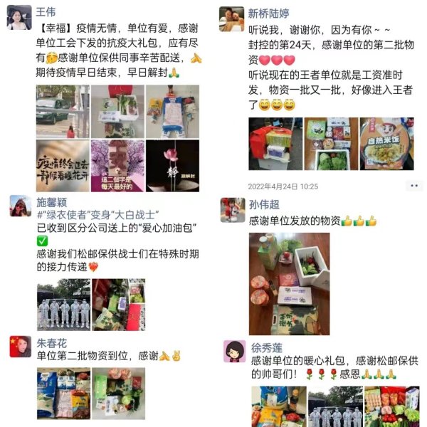 三月以來,上海疫情防控形勢(shì)嚴(yán)峻。松江分公司在統(tǒng)籌做好疫情防控和經(jīng)營(yíng)工作的同時(shí),始終關(guān)心著一線員工的生活,及時(shí)為大家解決購買生活物資等難題,將企業(yè)的愛心和溫暖送到員工身邊。