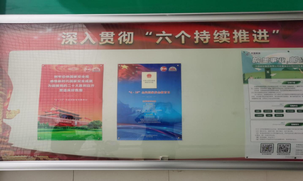 活動主要包括四項:一是組織部門觀看《責任重于泰山》安全生產宣傳教育片;二是網點LED屏滾動播放國家安全教育宣傳標語;三是設置宣傳橫幅,同時在櫥窗張貼宣傳海報;四是組織廣大員工積極參加“4.15”全民國家安全教育日網絡宣傳教育活動,積極分享。