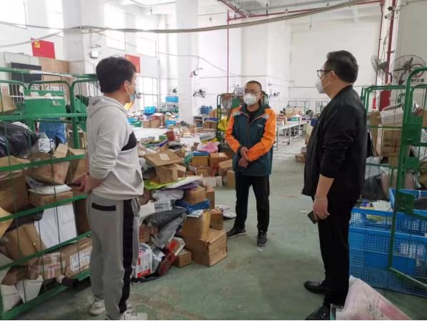 △區(qū)分公司領導在一線組織協(xié)調、參與收寄發(fā)運工作,提升員工們的復工復產熱情。