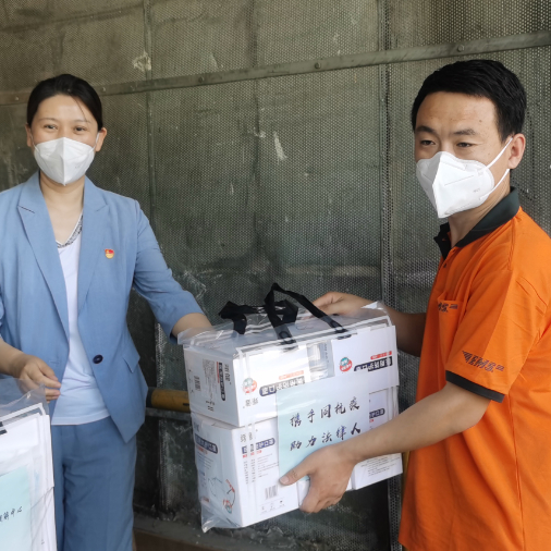 活動現場,北京利澤慈善基金會秘書長、北京賽智知識產權調解中心主任、西城區分公司副總經理共同為參加活動的快遞小哥贈送了N95及外科醫用口罩2500余只、酒精免洗洗手液50余瓶、75%酒精20瓶及酒精噴槍、口罩等防疫物品。
