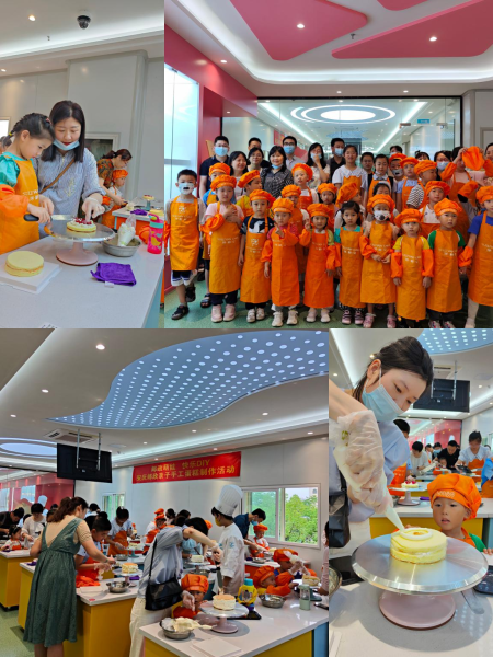 活動現(xiàn)場氣氛熱烈,歡聲笑語不斷。面對工作人員早已提前準備好的蛋糕胚,小朋友們臉上滿是期待與驚喜,迫不及待地想一展身手。在專業(yè)面點老師的指導下,家長與孩子們一起參與到蛋糕制作中,認真地給蛋糕抹著奶油,用心地設(shè)計著造型,再用水果、裝飾畫來點綴蛋糕表面,一個小小的蛋糕就被"打扮"得繽紛多彩了。
