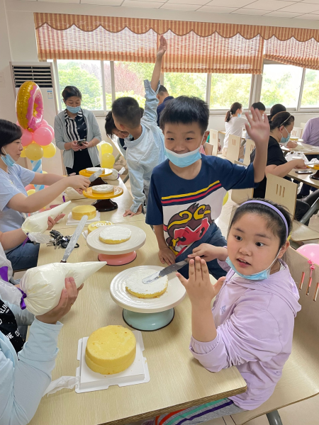 活動開始后,孩子們變身為小小“糕點師”。在蛋糕店老師的指導下,每個小朋友各種發揮自己的想象力,在蛋糕上抹勻奶油,鋪上各色水果布丁,制作出形色各異又不失童趣的蛋糕。家長們則一邊指導孩子做蛋糕,一邊為孩子們拍照,享受整個制作過程。 蛋糕制作完成后,小朋友們開心地展示著自己親手制作的蛋糕。“今天玩得真嗨,又好玩又有好吃的。”一個小朋友邊吃著小點心,邊與身旁的另一個小朋友說著。現場的家長表示,在六一兒童節,和孩子一起親手制作蛋糕,是送給孩子最好的兒童節禮物。