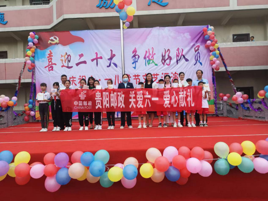 圖片說明:貴陽市郵政工會在鄉村小學開展“喜迎二十大、爭做好隊員”兒童節慰問活動。