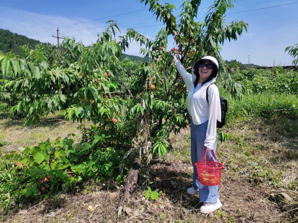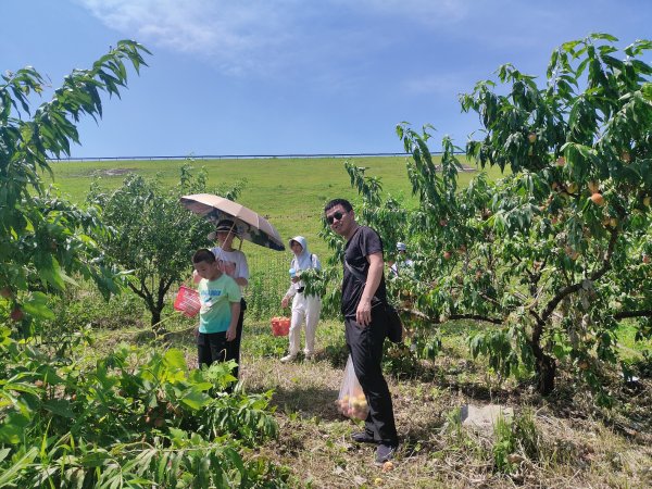 在黃金水庫(kù)旁,放眼望去,藍(lán)天白云碧水漣漪,偶爾跳出水面的小魚,還有那追逐嬉戲的鳥兒,構(gòu)成了一幅絕好的水墨丹青。下車后,大家歡快地奔向采摘園,呼吸著山林的清新空氣,感受著大自然的隨心暢意,大家的心情分外輕松。累累蜜桃散發(fā)出誘人的果香掛滿枝頭,樹枝都被壓彎了腰。摘蜜桃、品蜜桃......采摘的快樂、品嘗的喜悅、打趣的笑聲溢滿采摘園。每個(gè)人都收獲滿滿,體驗(yàn)了自由采摘帶來的收獲與快樂。大家一路歡聲笑語(yǔ),平時(shí)工作的疲勞都融化在這陽(yáng)光明媚的時(shí)光里。