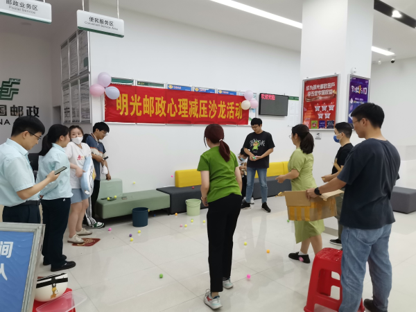 為減輕職工心理壓力,緩解日常工作疲憊,2022年6月1日,明光市郵政工會組織青年職工開展一場趣味橫生的心理減壓游戲沙龍。