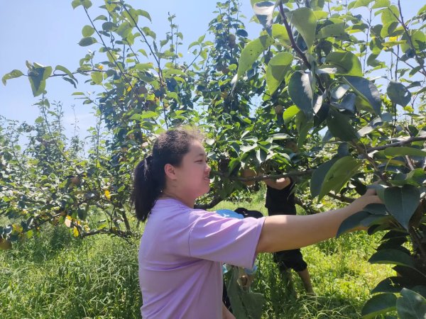 當日上午10點30分,“壽星”員工們陸續來到了約定地點。在采摘人員的指引下,提著桶子、袋子、三五成群走進梨園,一顆顆香甜飽滿的梨子掛在枝頭,聞著果香,欣賞著豐收的果園風光,此刻遠離城市的喧囂,走進自然,感受自然,讓人心情愉悅和有一種說不出的滿足感。