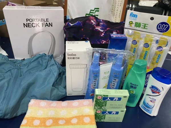 工會為項目組的26位職工配備了工會愛心慰問包,不僅有基礎的飲用水、洗漱用品,更有專為抵御炎熱天氣的便攜小風扇,防曬衣,還有防蚊蟲的驅(qū)蚊水以及品類齊全的藥包。