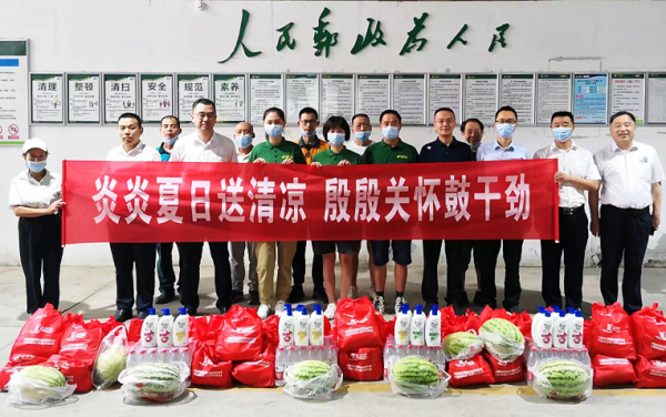 在送清涼過程中,慰問組詳細了解了各單位的生產、工作、代理金融各項重點業務發展情況、郵政快遞農村三級物流體系建設、農村電商運行情況、疫情防控工作,并調研基層面臨的亟待解決的困難和問題,向在高溫下堅守工作崗位的職工表示慰問和感謝,鼓勵大家克服高溫,注意防暑降溫,科學合理安排作息時間,優質完成各項工作,同時抓好疫情防控與安全生產,確保各項工作有條不紊進行。