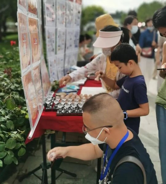 “這里有32枚園博園的紀(jì)念戳,包括園里所有的景點(diǎn),還有園博園的吉祥物和LOGO。今天都逛了哪些景點(diǎn),你們可以找找看,蓋在明信片上。”在北京園博園江蘇園外的文創(chuàng)市集區(qū),豐臺(tái)郵政的工作人員正在為小朋友們介紹郵戳。