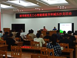 蚌埠市郵政工會邀請了蚌埠技師學院副教授、市心理健康教育研究會會長、社科聯副主席、關工委副秘書長、全國首屆心理健康輔導之星 、全國社科工作先進個人 ,中國好人吳松年教授為職工進行心理壓力疏導。吳教授結合職工在工作中常見的困惑,例舉了大量生動鮮活事例,從專業的角度引導職工正確認知心理健康,如何應對、緩解和釋放壓力,通過科學、有效的方法控制和管理情緒,提高職工自我掌控能力和技巧,提升幸福感和安全感。 在吳松年老師的指導下,職工通過快樂相逢、相親相愛、舒緩壓力、感悟分享等四個單元針對性活動釋放和緩解。活動現場氣氛活躍,職工熱情,兩個多小時的心理疏導和減壓活動,讓職工感受到的是輕松、釋然和快樂。大家對心理健康的重要性有了新的更深刻地體會,紛紛表示受益匪淺,將以積極、健康向上的心態投入到工作和生活中,奪取疫情防控和大會戰的全面勝利!