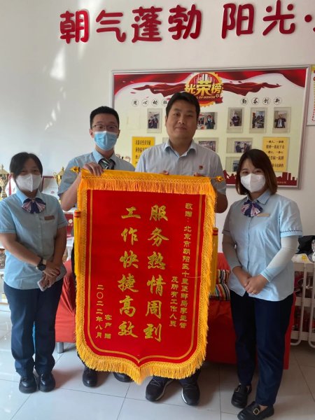 近日,家住內蒙古赤峰市的胡女士興沖沖來到朝陽區十里堡路郵政營業所,感謝該所李英浩、王賽東等人特事特辦和熱情服務的態度,并送上了一面錦旗。