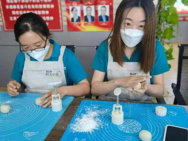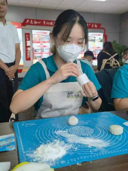大家認真聽,專心學、細心做,每個人都做了奶黃和伯爵茶兩種口味的月餅,大家一起迎中秋、做月餅,臉上都洋溢著笑容,感受到了節日的氣氛。(北京郵政工會)