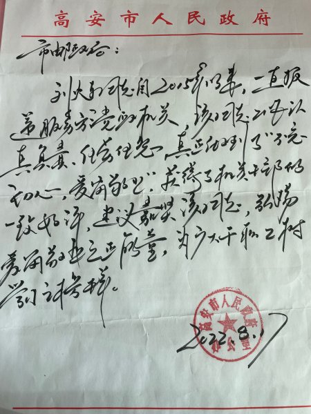 在政府辦公大樓,遇到劉火車的人都會親切的和他打招呼。自2015年投遞黨政機關報刊、郵件以來,他始終堅持“樸實、盡責、誠信、熱心”的原則,認真負責、任勞任怨,真正做到了“不忘初心、愛崗敬業”。提到劉火車,隨便一問大家都會說:“這么多年,他一直為政府辦公大樓服務,從來沒出現過什么失誤。現在都不用出門,一有什么業務,打個電話給他,約到什么時候來,他一定會準時到。”劉火車身上展現出的盡職奉獻工作作風,獲得了政府機關干部的一致好評。高安市人民政府還特地寄來表揚信,對他認真負責的工作精神表示肯定與贊許。