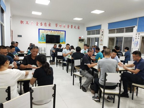 賽前,工會委員會進行了精心準(zhǔn)備,提前召開會議,挑選比賽獎品,準(zhǔn)備茶水,布置賽場。比賽期間,公司領(lǐng)導(dǎo)和廣大職工共聚一堂,開展迎金秋“摜蛋”比賽,比賽現(xiàn)場歡聲笑語,其樂融融。經(jīng)過幾輪激烈的角逐,分別決出一等獎二名;二等獎四名;三等獎八名。比賽結(jié)束后,大家依然興趣不減,意猶未盡。通過開展此次活動,全體干部職工收獲了快樂,企業(yè)也收獲了和諧。