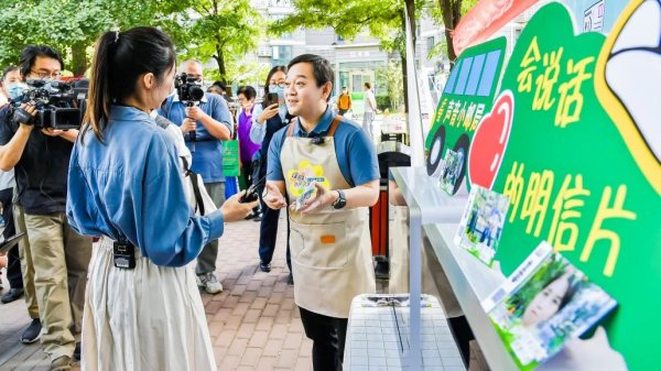 居民還可以寫下明信片寄語,送給未來的自己或者身邊的親朋好友。“在我的記憶里明信片是只能寫字的,沒想到現(xiàn)在的明信片還可以添加我們的聲音,聽見我們的祝福,這是一個非常感人的地方。”珠江紫臺社區(qū)的居民感嘆道。